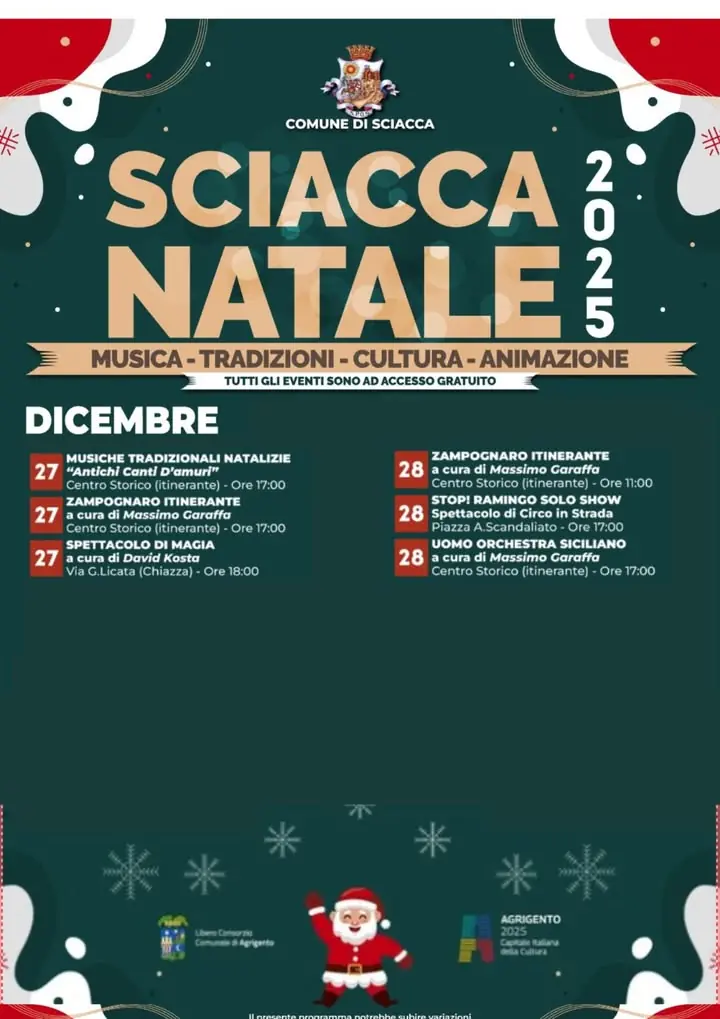 SCIACCA NATALE 2025 Il cartellone con tutti gli eventi dal 12 dicembre al 6 gennaio 2026 LINK https://www.comune.sciacca.ag.it/sciacca-natale-2025-il-ca…/ #sciacca #natale #sciaccanatale2025